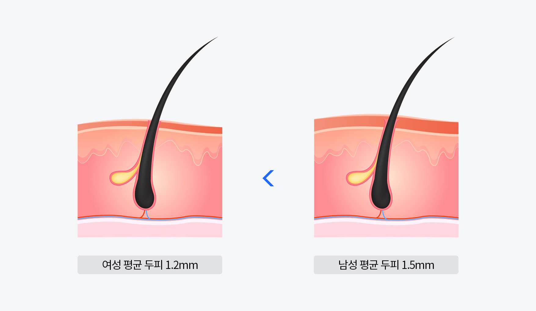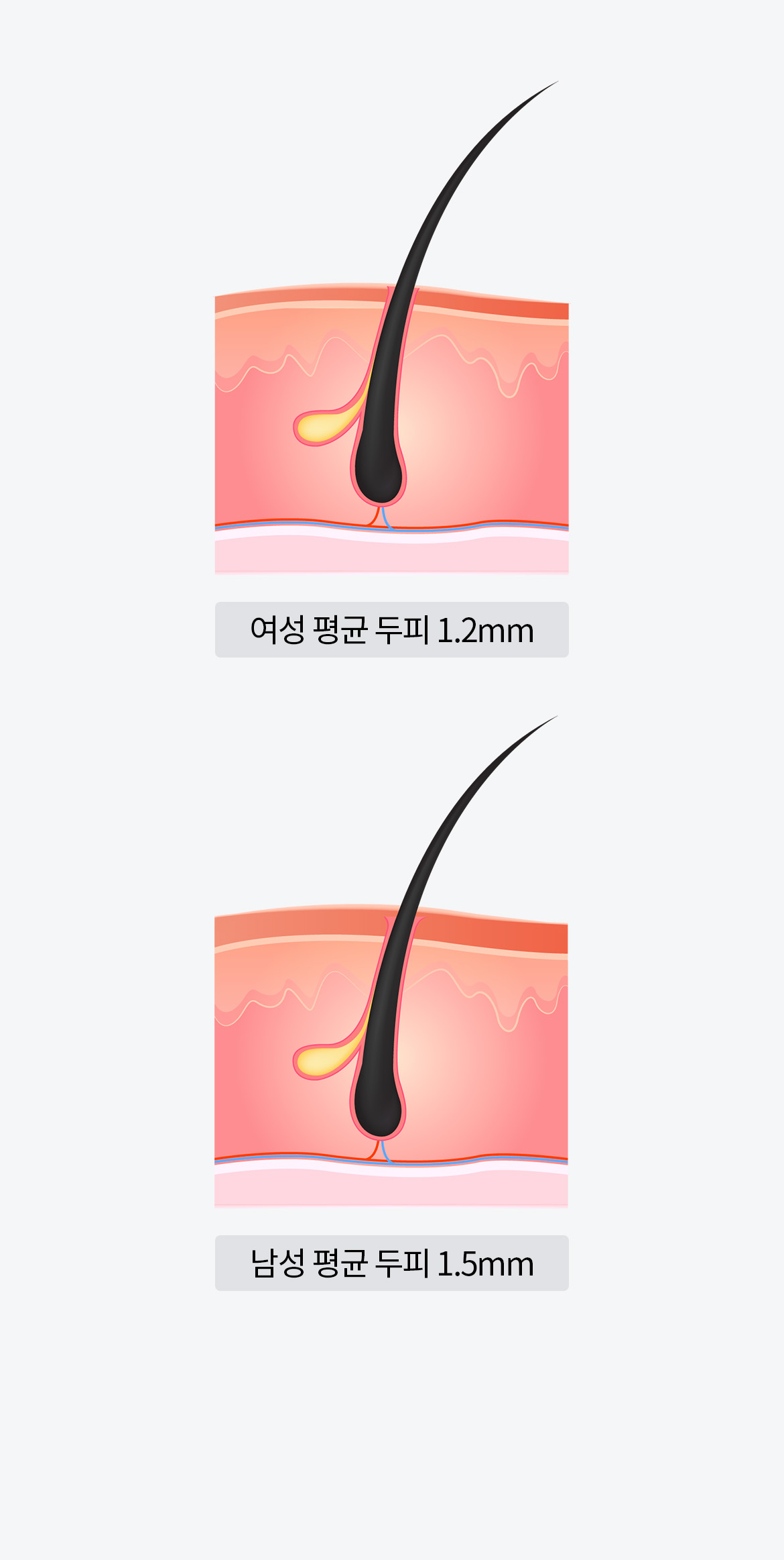 남성보다 얇은 여성의 평균 두피 두께 차이를