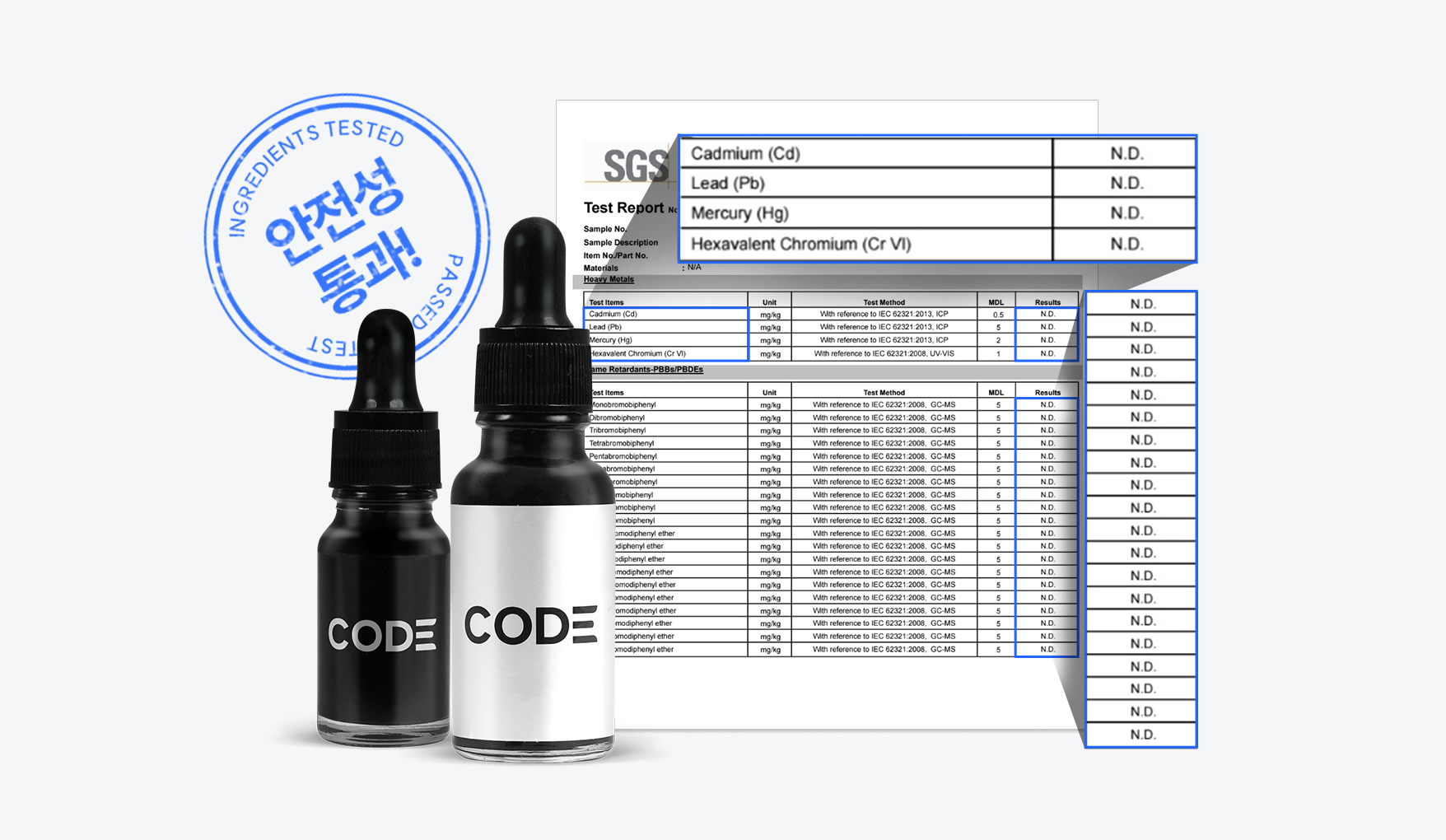 한국화학융합시험연구원(KTR)과 SGS 검사를 통과한 안전한 CODE 잉크만을 취급합니다.