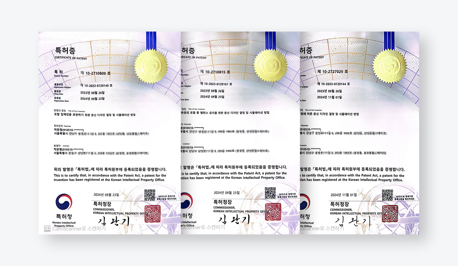 톤온톤 기법, 그라데이션 기법, 큐빅이펙트 기법 3종 특허 완료
